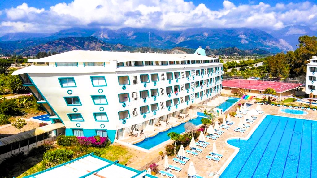 This family-friendly hotel is located in the Kiris District, on Turkey's glorious Mediterranean Coast. The hotel is situated just 5 km away from the resort of Kemer. The hotel is set to a stunning mountain backdrop, lying just 300 metres away from the beach. The hotel is ideal for those who are eager to explore the rich history and culture of the area. The hotel is situated within easy access of a number of attractions, including Phaselis. This wonderful hotel comprises brightly-decorated guest rooms, with turquoise tones to reflect the beauty of the sea. The hotel offers a wide range of activities, ensuring fun for all the family. The hotel features an aquapark and a spa centre, ensuring unrivalled comfort and relaxation.