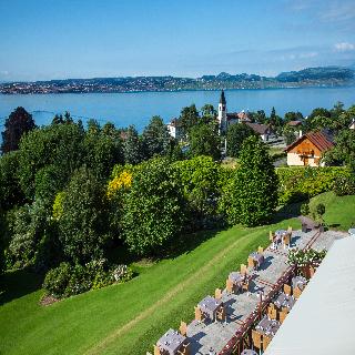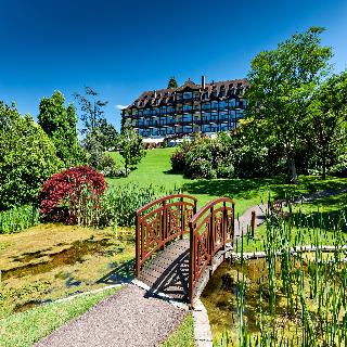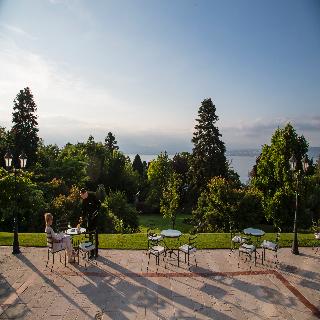 The hotel is surrounded by a 19-hectare park planted with ages-old trees with fragrant essences and it offers breathtaking views of Lake Geneva, which is just 2 km away. The centre of Evian and its train station are also 2 km from the hotel, while Geneva is an hour's drive and Lausanne and Mont Blanc are both roughly an hour and 15 minutes by car from the hotel. Geneva International Airport is 45 km from the hotel and Annecy-Meythe Airport is around 80 km away.||This hotel was renovated in 2010 to provide a refined and intimate atmosphere where nature expresses itself through subtle brush strokes. The air-conditioned club resort offers 80 guest rooms and welcomes its guests in a lobby with 24-hour reception and check-out services, a hotel safe, currency exchange facilities, a newspaper stand and lift access to the upper floors. There is a casino, TV lounge, bar and restaurant as well as a children's playground and kids' club for younger guests. Guests may also take advantages of the conference facilities, Internet access, room service and a laundry service. Bicycles can be hired at the hotel and there is a car park for guests arriving by car.||Each room offers a south-side view out onto the park or a lake view, with a twin bed or king-size bed as well as an en suite bathroom with bathtub and hairdryer. All rooms are equipped with a flat-screen TV, minibar, safe, radio, hifi, direct dial telephone, individually regulated air conditioning and heating, broadband wireless Internet access and a private balcony or terrace.||1 Spa Quatre Terres including 10 treatment rooms (face and body treatments, massages), heated indoor swimming pool, sauna, steam room, jacuzzi, fitness area and heated outdoor swimming pool. Evian Resor Golf Club.||There are two restaurants offering authentic and elegant cuisine (for evening meals) or traditional and relaxed cuisine.