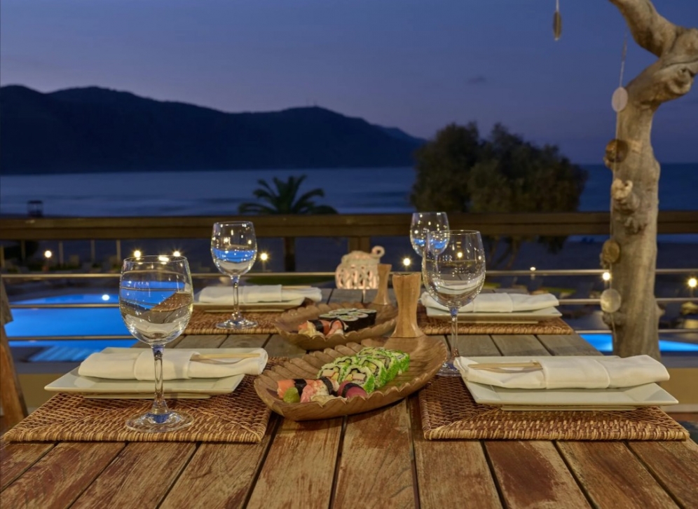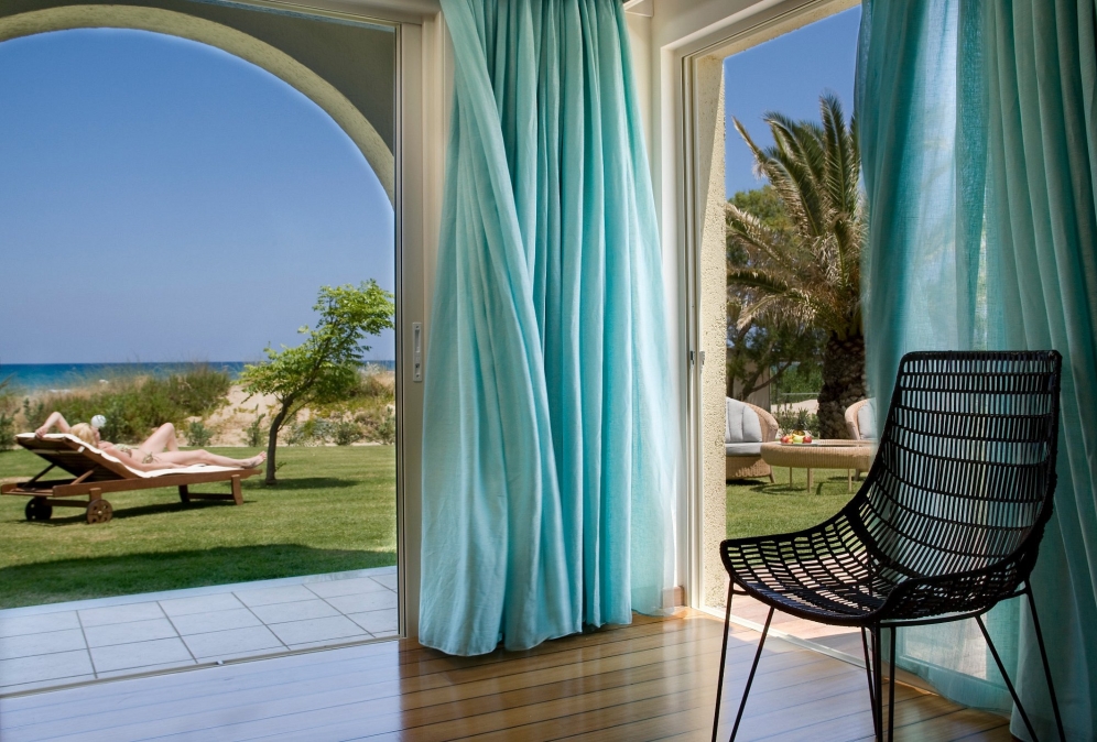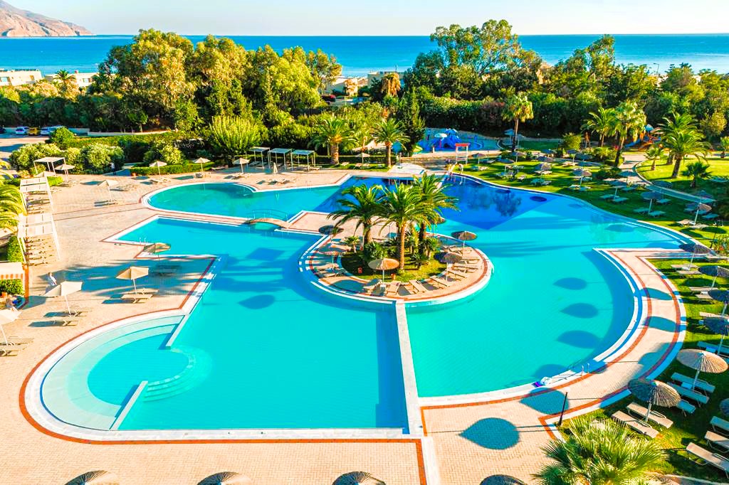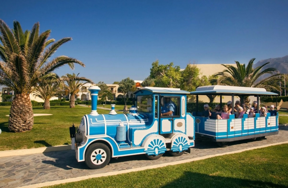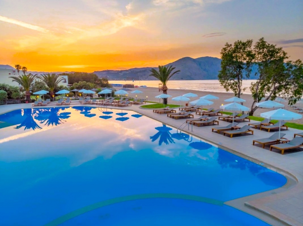 Pilot Beach Resort is located on the northwest shoreline of Crete, Greece, in the bay of Almyros neighboring the picturesque fishing village of Georgioupolis, halfway between Chania and Rethymno amongst a scenery of unparalleled beauty, and near settlements that retain the traditional Cretan elements but also villages with a cosmopolitan atmosphere. It offers a unique combination of tradition, hospitality and luxury with the comforts of a state of the art hotel. Pilot Beach Resort with its spacious stylish public areas and unique Cretan architecture is surrounded by olive and avocado trees and is directly on the sandy beach of Georgioupolis offering spectacular views of the Aegean Sea and of the famous White Mountains. Whilst it is considered among the finest five star hotels in Crete and offers services of the highest standards combined with the well known authentic Cretan Hospitality. |The architectural style of the resort emanates the atmosphere of a Cretan village. The resort offers 450 bungalows and suites of various types.|The resort's private sandy beach on the shores of the beautiful Aegean Sea, covers 400 meters and represents only a small stretch of the famed, 7 km long Georgioupolis Beach which is also awarded with the Blue Flag for maintaining the high standards of the international Blue Flag Organization regarding safety, quality of waters and the general infrastructure of the beach.|Pilot Beach Resort offers the ideal setting for a family vacation, with family accommodation and facilities, activities and supervised children activities. The beach is ideal for family holidays, where every family member can enjoy organized beach games and the shallow water at the shore is a children's paradise.