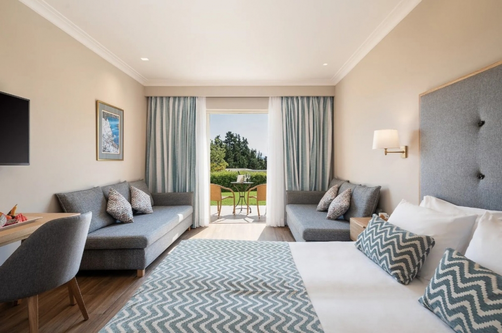Pilot Beach Resort är ett exklusivt femstjärnigt strandresort beläget direkt vid den långa Peristeras-stranden, strax utanför den charmiga byn Georgioupolis på norra Kreta. Hotellet är uppbyggt som en grönskande bungalowby med låg bebyggelse, olivträd, gräsmattor och gångvägar som leder till både strand och poolområden. Atmosfären är elegant och avslappnad, med fokus på komfort, service och autentisk kretensisk gästfrihet. Här bor du i rymliga rum och sviter med modern inredning, balkong eller terrass, luftkonditionering, satellit-TV, minibar, kassafack, Wi-Fi och badrum med dusch eller badkar.