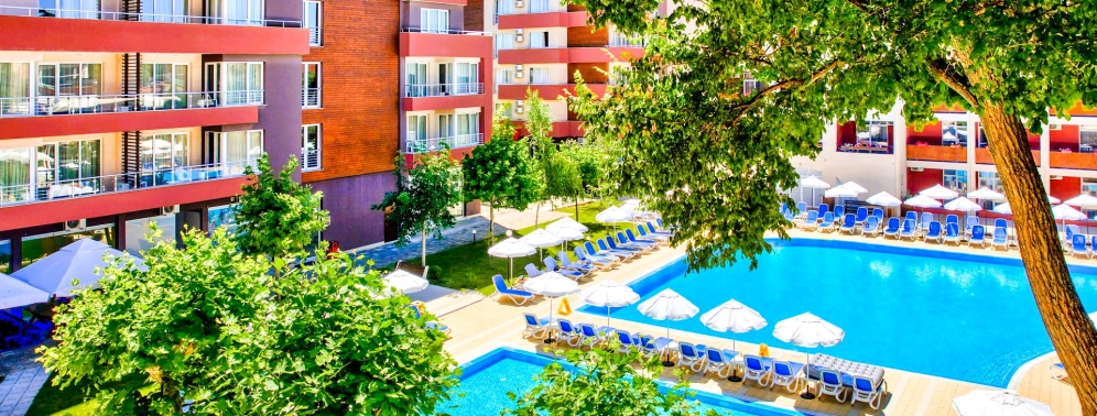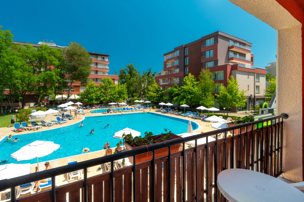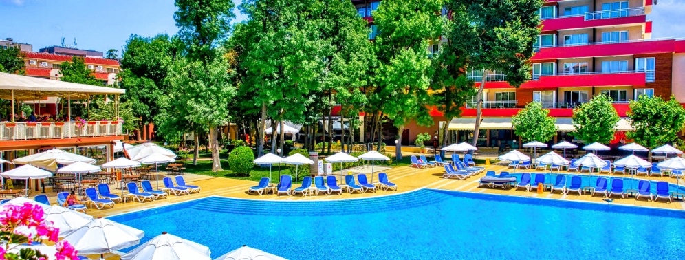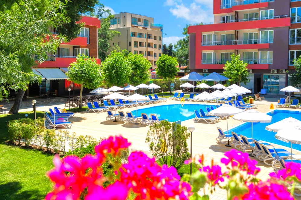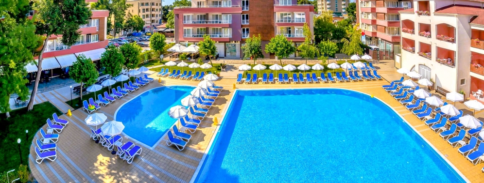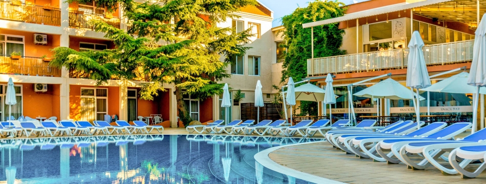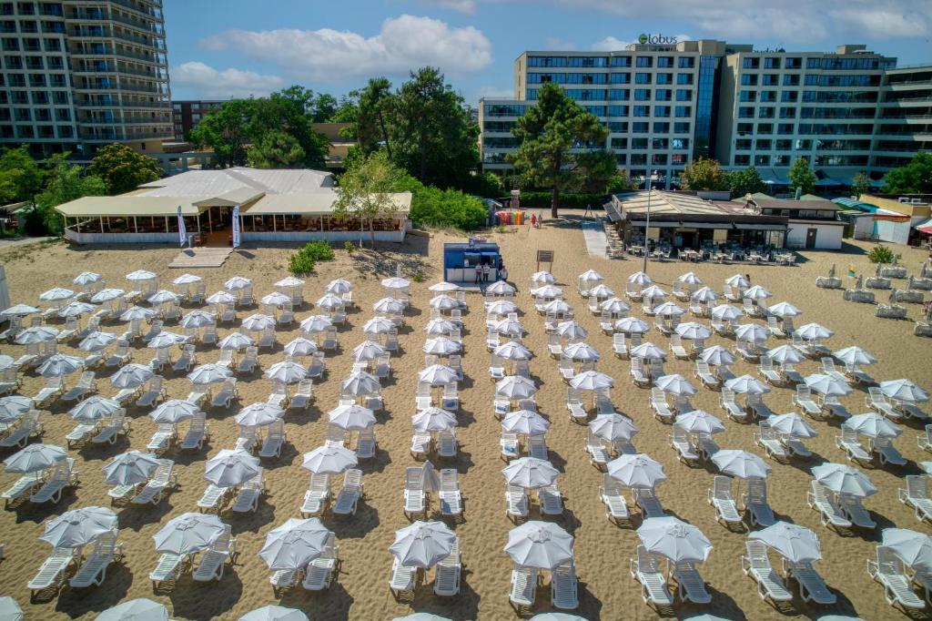 Hotellet har en privat strandzon med gratis solstolar och parasoller för sina gäster, vilket är ovanligt i Sunny Beach och mycket uppskattat.