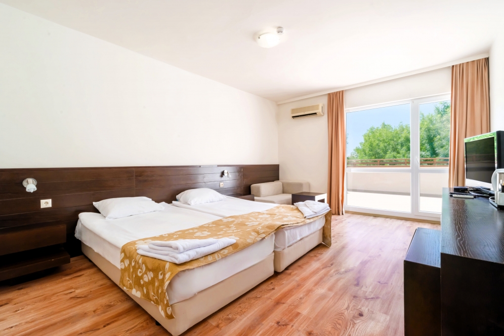 Asteria Family Sunny Beach erbjuder en mängd olika boendealternativ, från mysiga standarddubbelrum till rymliga familjerum och sviter, utformade för att passa våra gästers olika behov. Varje rum är fullt utrustat med bekvämligheter för en behaglig vistelse, inklusive platt-TV, luftkonditionering, en minibar som dagligen fylls på med läsk och öl, en vattenkokare, kostnadsfritt Wi-Fi, ett gratis värdeskåp och ett privat badrum med toalettartiklar och hårtork. Dessutom har de flesta rum en balkong med utemöbler – perfekt för att njuta av utsikten över trädgården och poolen eller för att koppla av i din egen privata utomhusmiljö.