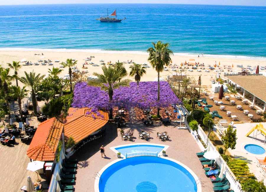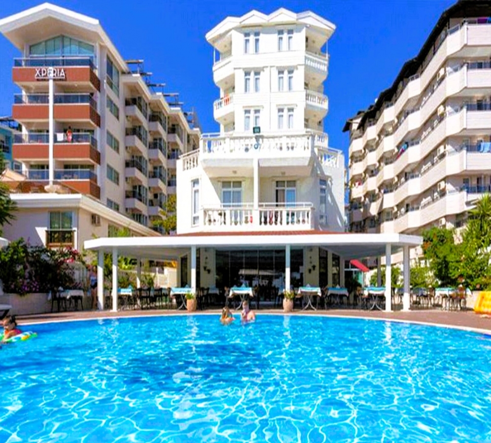 Hotellet erbjuder reception, lounge, bastu, hamam, massage, biljard, bordtennis och möjlighet att boka utflykter. Läget gör det enkelt att ta sig till Alanyas sevärdheter som borgen, Damlatasgrottan och hamnområdet. Hotellet passar gäster som söker ett centralt och strandnära boende med enkel standard.