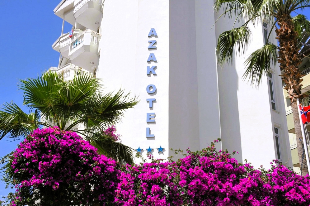 Azak Hotel är ett strandnära och omtyckt hotell beläget direkt vid Kleopatrastranden i Alanya. Hotellet har ett av områdets bästa lägen med gångavstånd till centrum, shopping, restauranger och strandpromenaden. Atmosfären är avslappnad och familjär, och hotellet passar gäster som prioriterar läge framför lyx. Här bor du i ljusa rum med balkong, luftkonditionering, satellit‑TV, minibar, Wi‑Fi, kassafack och badrum med dusch eller badkar. Många rum har utsikt över havet eller Alanyas borg.