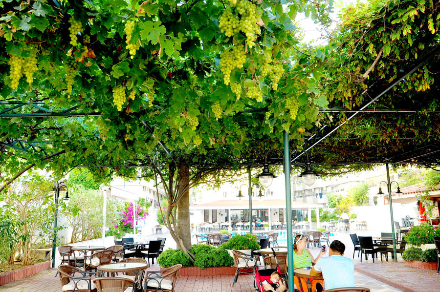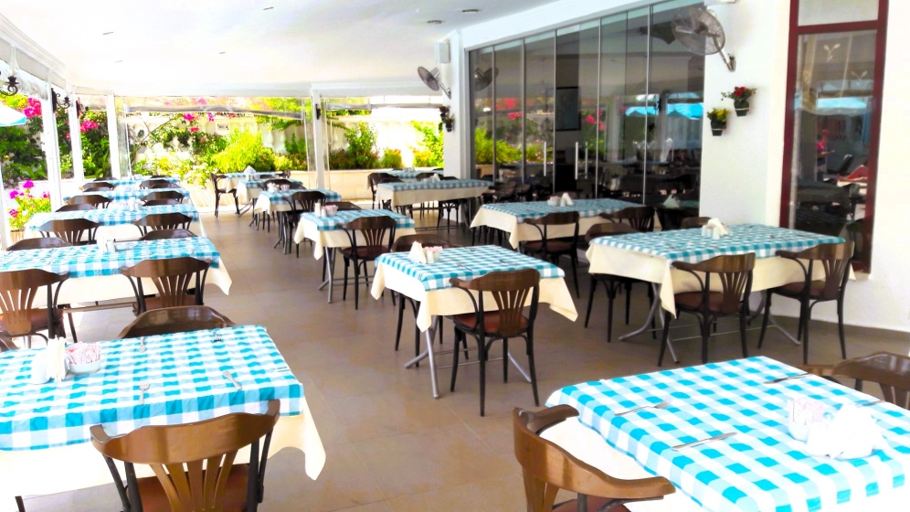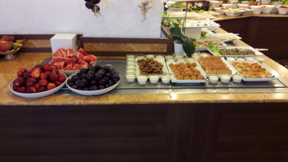 Hotellet erbjuder frukost och halvpension, där huvudrestaurangen serverar buffémåltider med turkiska och internationella rätter. Poolbaren erbjuder drycker och enklare snacks under dagen, och lobbybaren serverar kaffe, te och alkoholhaltiga drycker kvällstid. Importerad alkohol, färskpressad juice och drycker på flaska eller burk ingår ej.