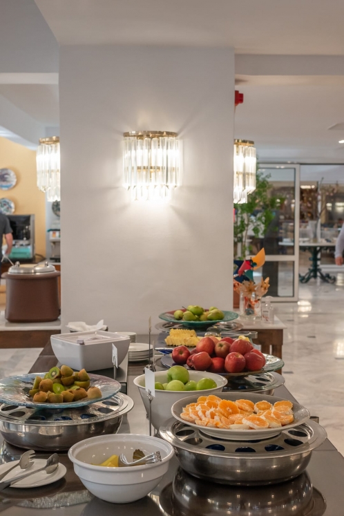 Dionysos Hotel har flera restauranger med olika karaktär när hungern gör sig påmind. Dagen startar du bäst i hotellets frukostrestaurang och under dagen kan du njuta av goda lunchrätter vid poolen eller i souvlakikiosken. När dagen blir till kväll kan du testa på olika rätter i à la carte-restaurangerna. På hotellområdet finns även ett café med våfflor, bakverk och smörgåsar.
