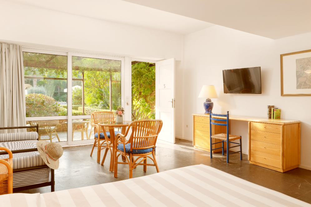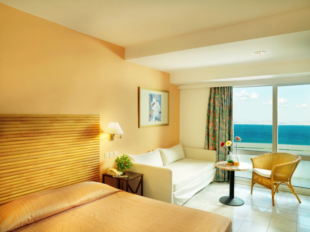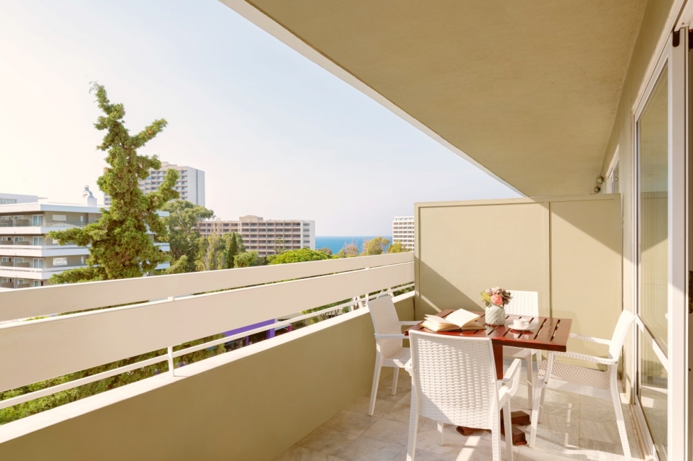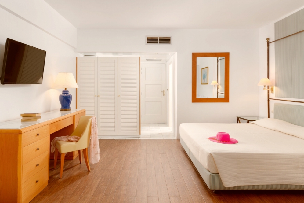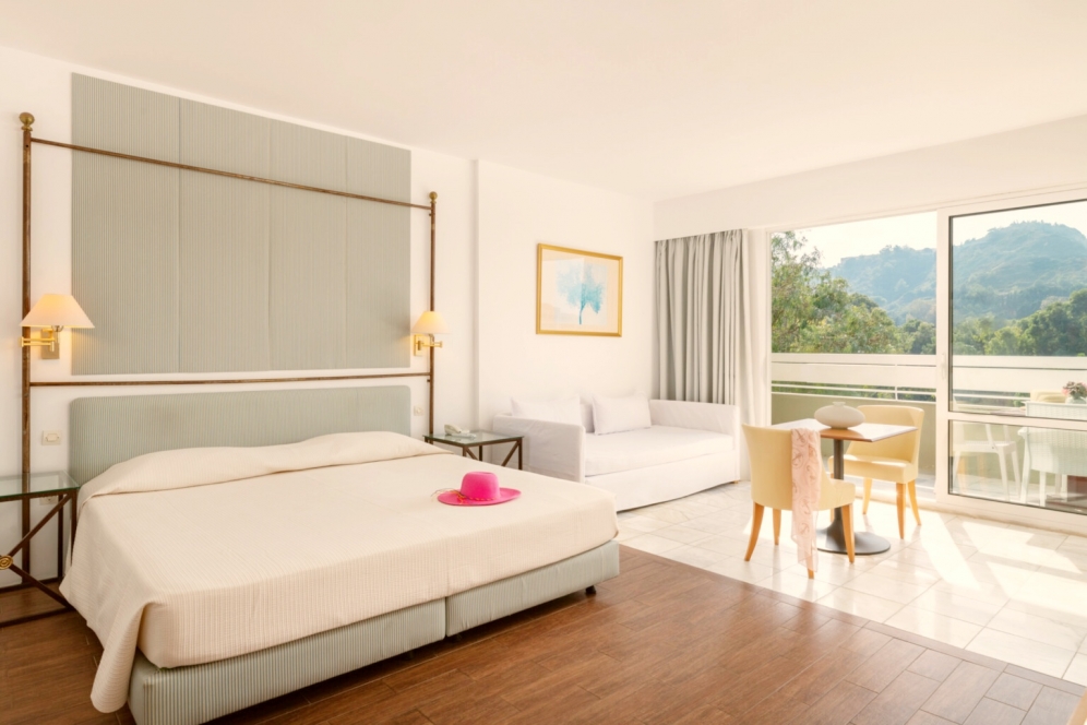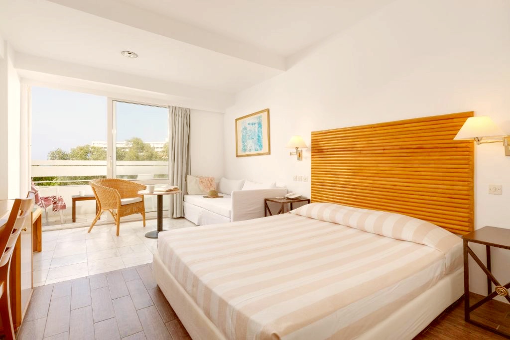 Dubbelrum på 23 m2 är mysigt inrett och har egen balkong. Gör detta rum till din mysiga semesterbas från vilken du kan uppleva Dionysos Hotel och Rhodos när du vill.