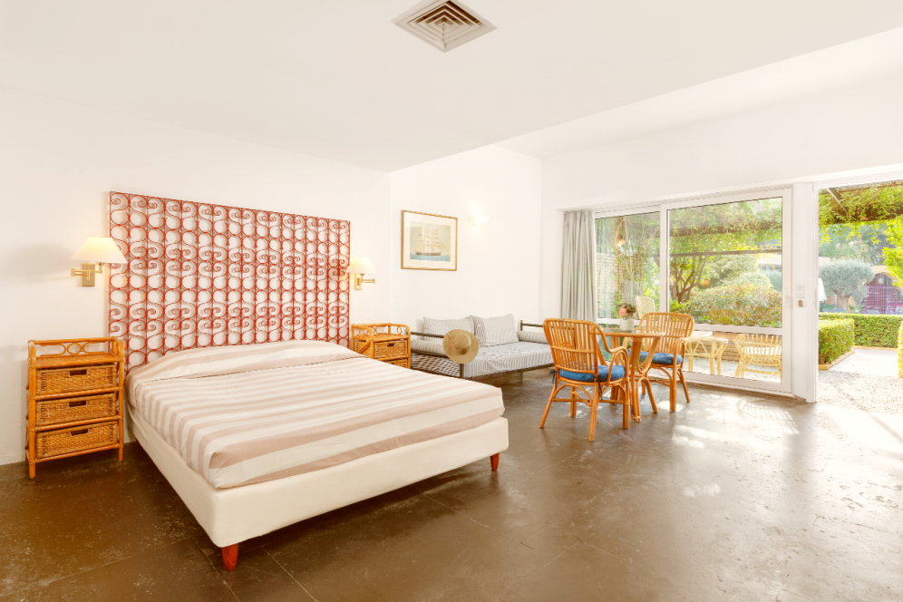 Studio erbjuder extra utrymme och separat pentry för snacks eller cocktails och härlig terrass eller balkong. Studion har king size-säng, två bäddsoffor och rymligt badrum som bidrar till den fina semesterupplevelsen.
