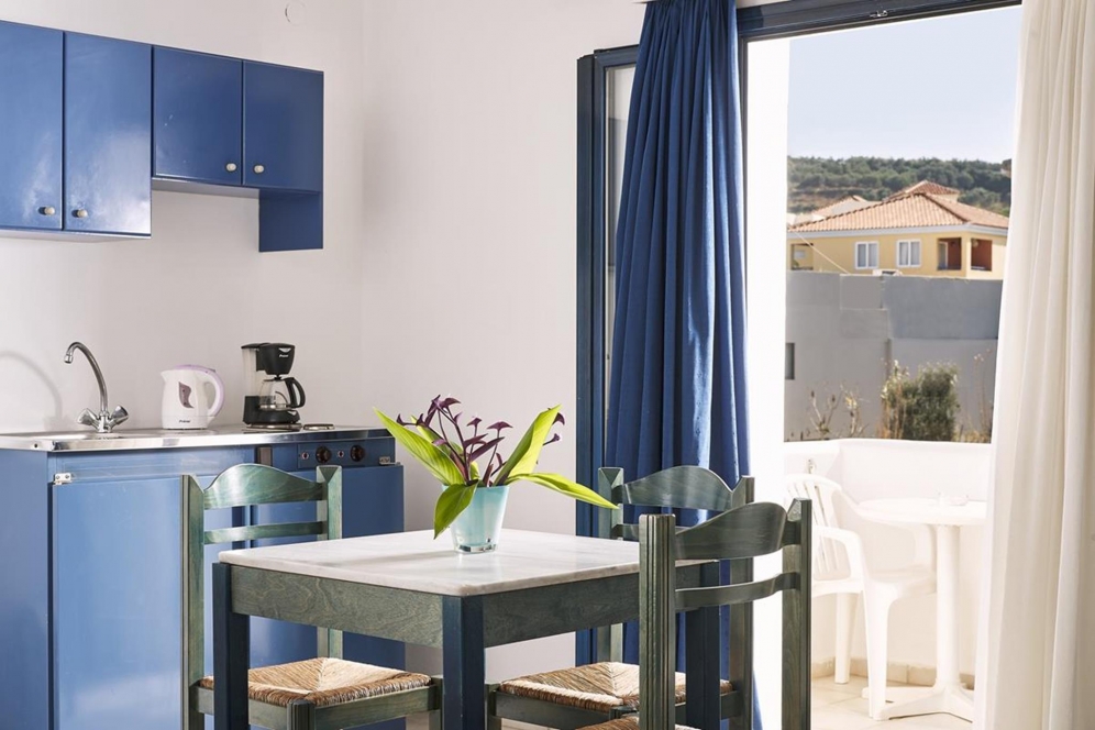 Detta vackra och trevliga hotell ligger vid Agia Marinas pittoreska kustlinje, med många fina stränder där besökare kan koppla av och återhämta sig från vardagens stress. Fastigheten ligger inom en kort promenad från närmaste sandstrand, bara 80 meter, och Chanias intressanta stad ligger mindre än 10 kilometer bort. De gäster som har en bil kan upptäcka många andra fantastiska vita sandstränder i närområdet, som Falasarna eller Elafonissi. Boendealternativen sträcker sig från fullt utrustade och rymliga etagelägenheter, studior och lägenheter som erbjuder en överlägsen vistelse i total sinnesro och avkoppling. De är välutrustade för en vistelse med självhushåll med ett litet kök och en privat balkong eller terrass med panoramautsikt. Mitt i boendet har gästerna en fantastisk pool och det finns även en snackbar och en grillplats.