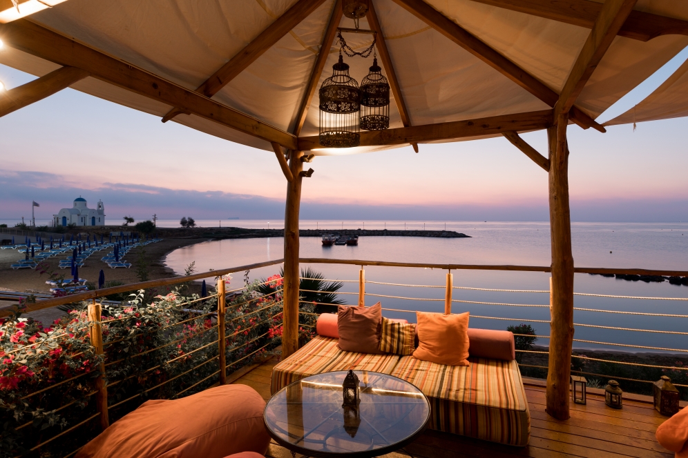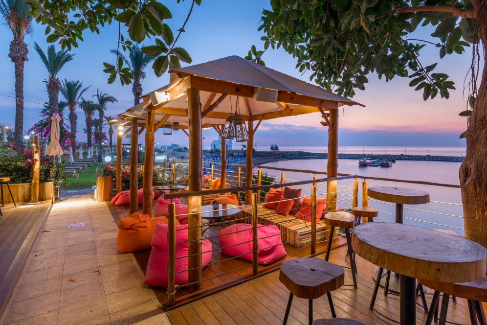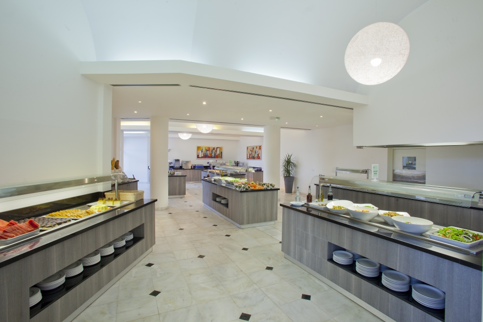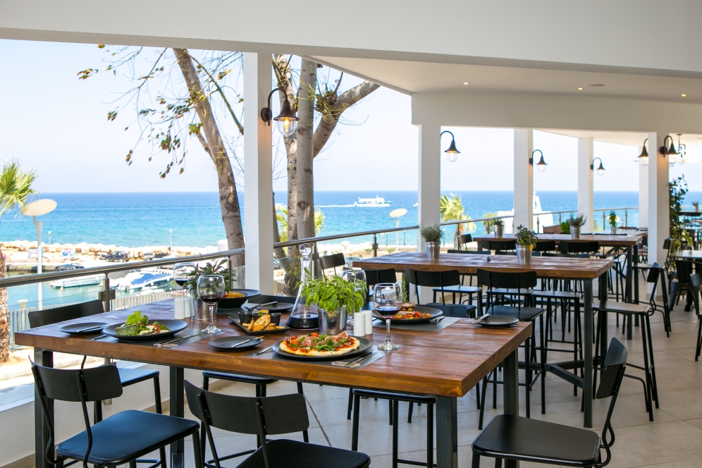 Den eleganta restaurangen Atrium serverar regionala och internationella rätter. Hotellet har också en taverna som serverar cypriotiska rätter. I baren vid poolen kan du beställa kalla drycker eller glass.