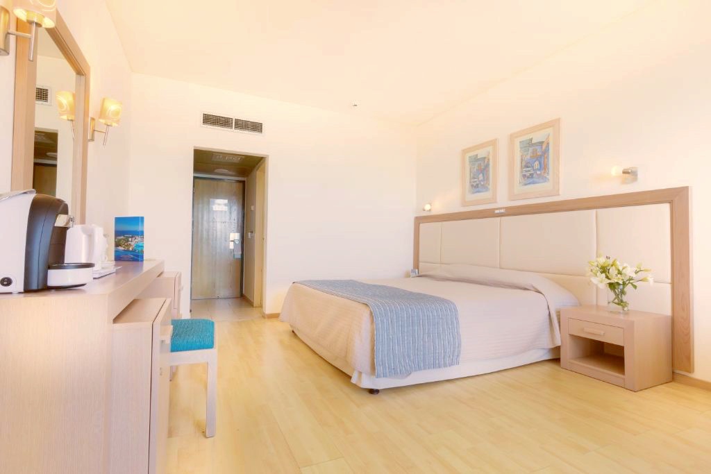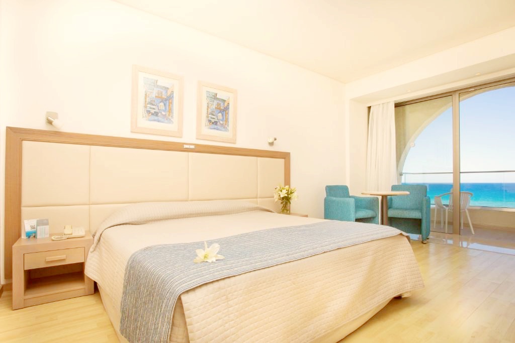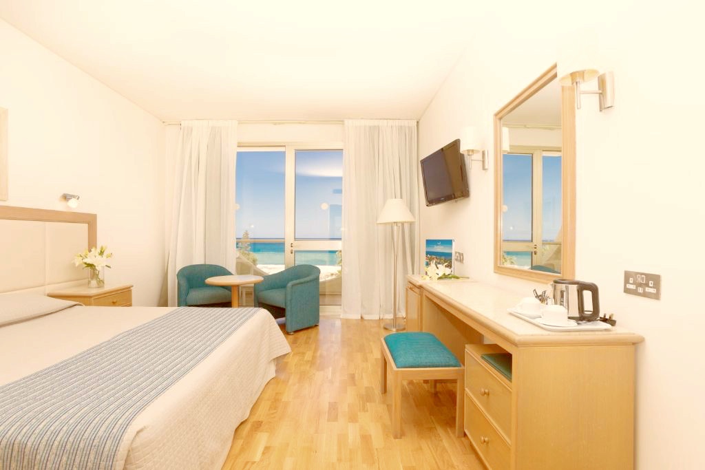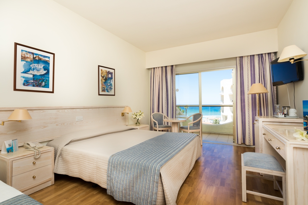 Rummen på Golden Coast Beach Hotel är utrustade med moderna möbler. Rummen har minibar och TV med satellitkanaler. Vissa rum har balkong med panoramautsikt över Medelhavet.