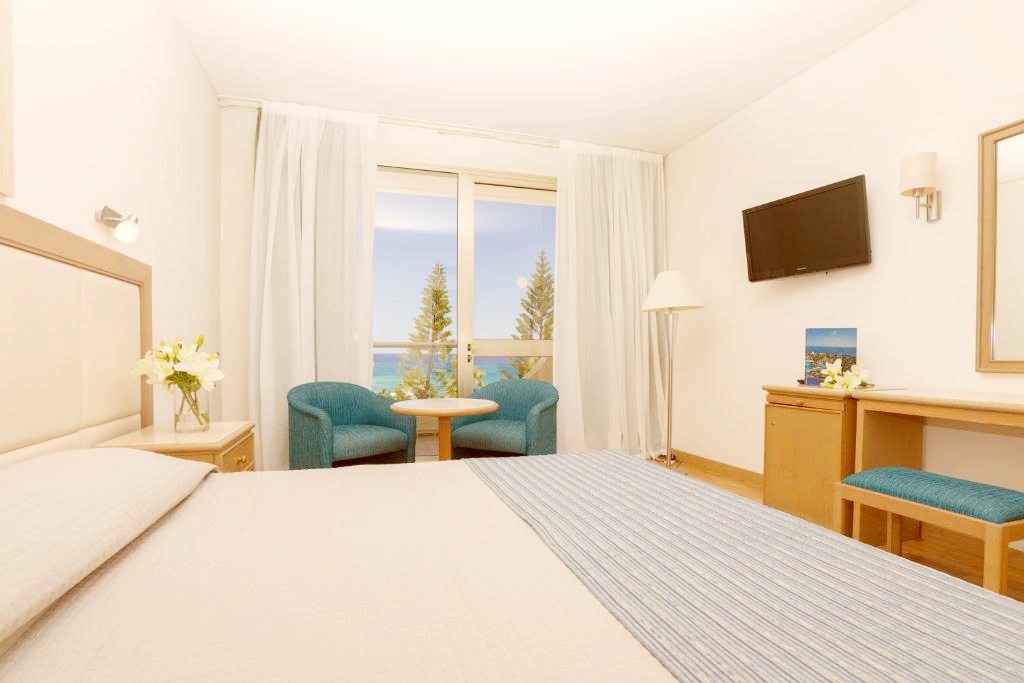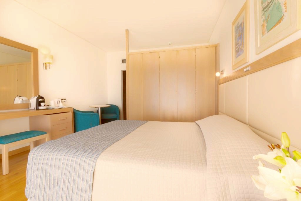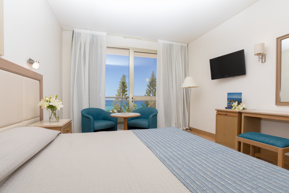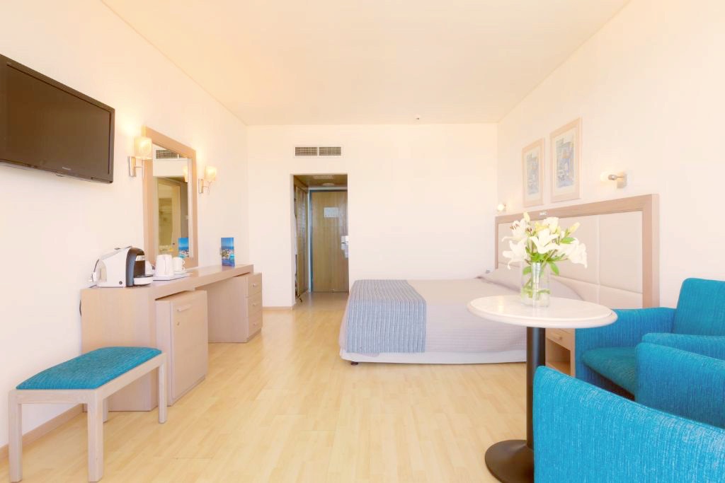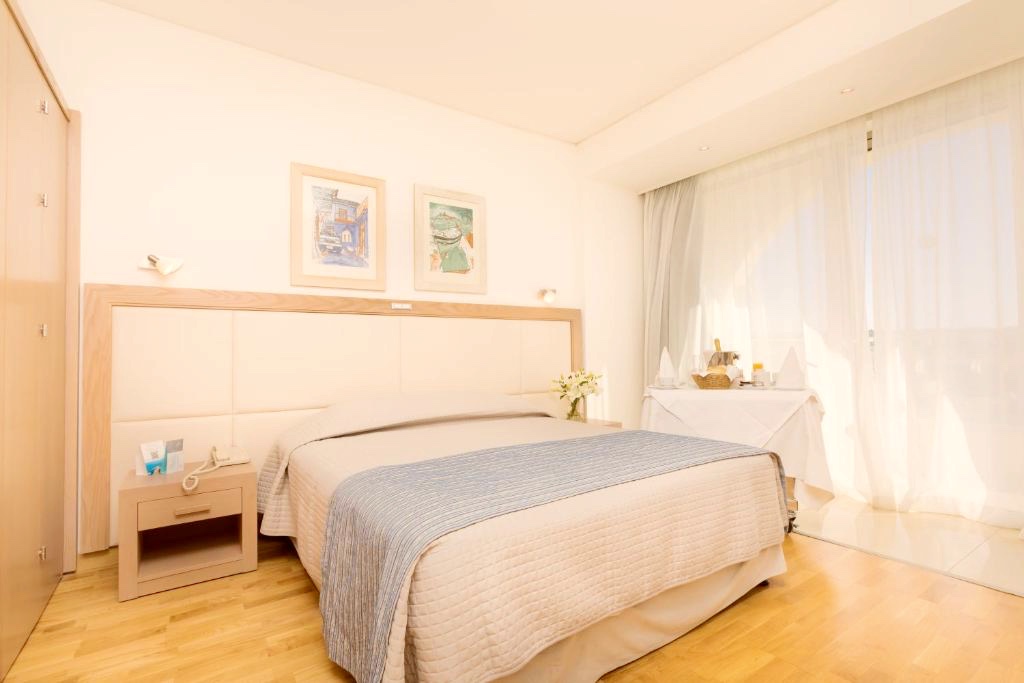 Rummen på Golden Coast Beach Hotel är utrustade med moderna möbler. Rummen har minibar och TV med satellitkanaler. Vissa rum har balkong med panoramautsikt över Medelhavet.
