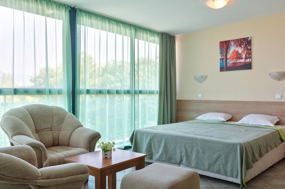 Kort beskrivning: Rymligt rum med dubbelsäng och bäddsoffa eller två separata sovzoner. Balkong med utsikt mot stad eller trädgård. Luftkonditionering, satellit-TV, minibar, kassafack (mot avgift), Wi-Fi. Badrum med dusch, hårtork. Barnvänlig inredning och gott om plats för lek. Städning 7 ggr/vecka.