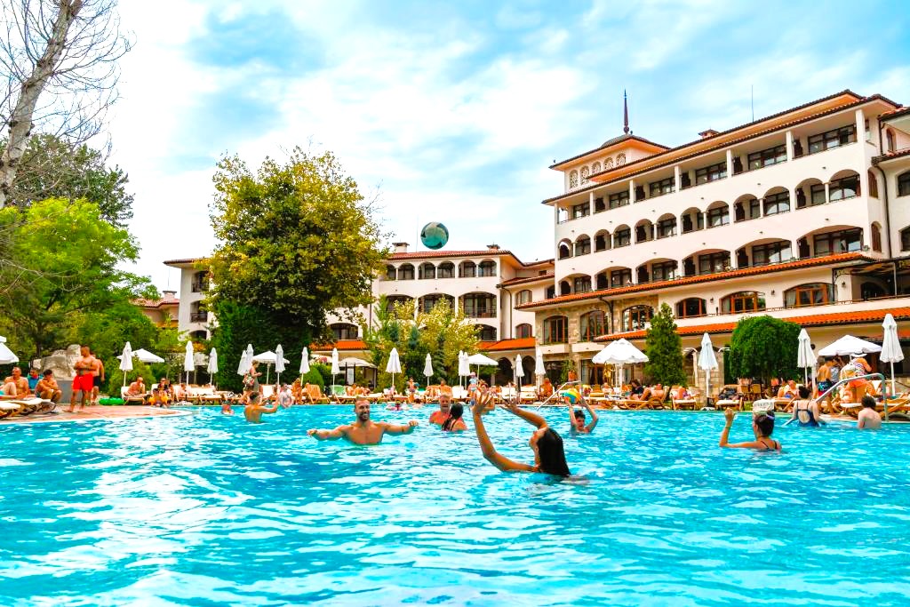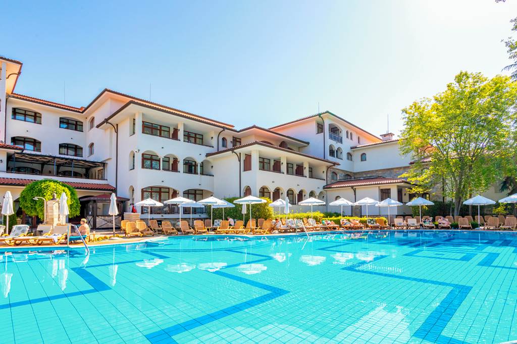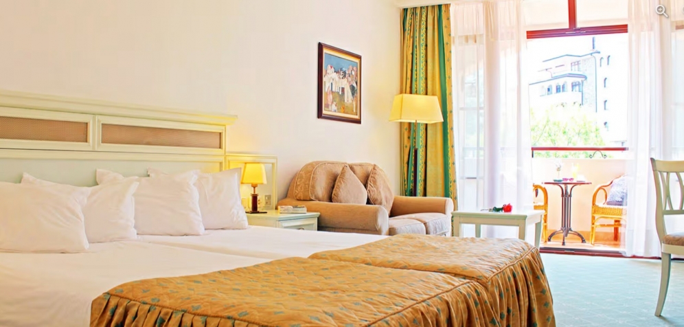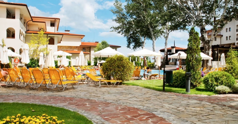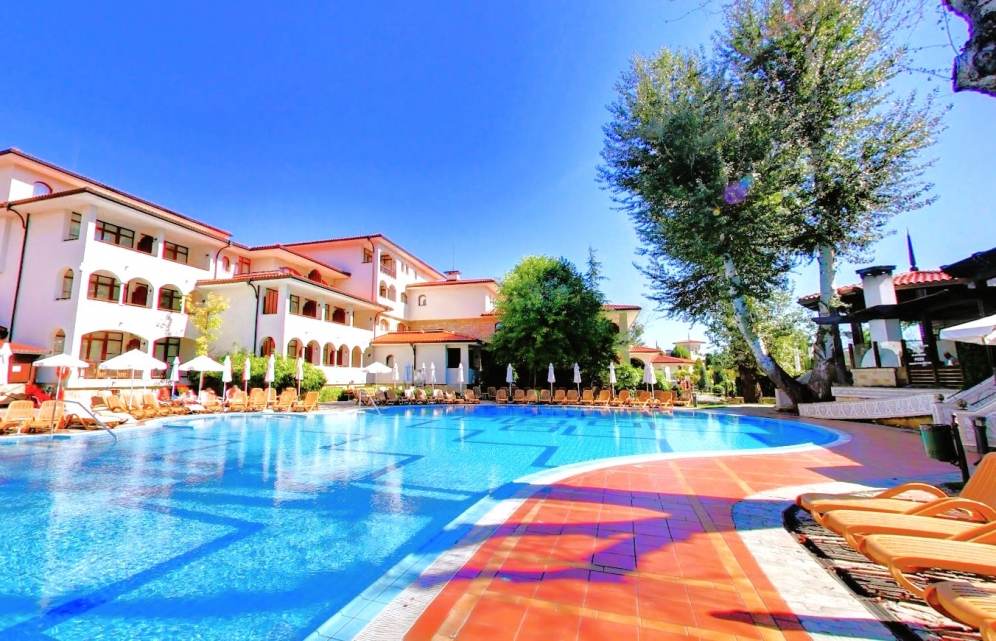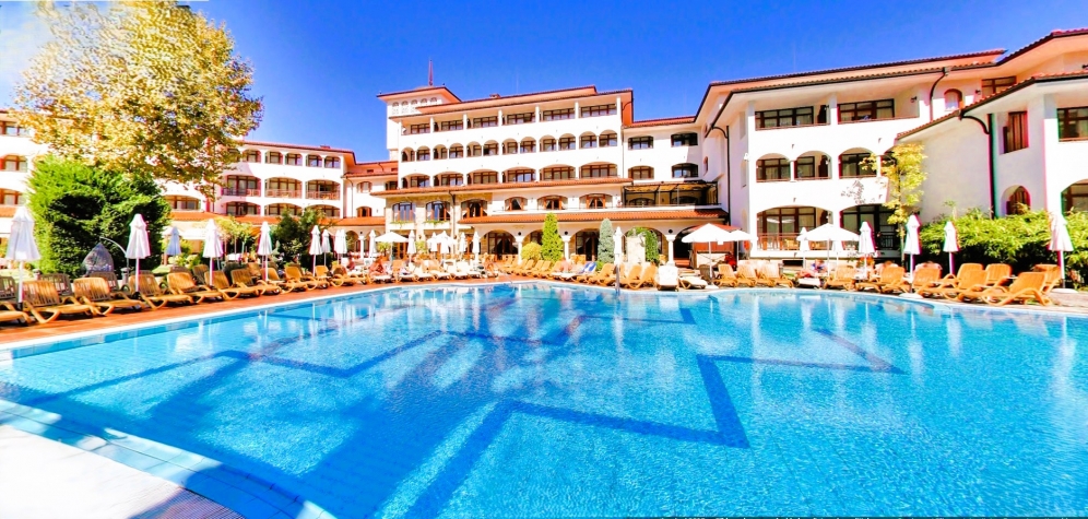 Royal Palace Helena Park är ett elegant och välrenommerat hotell beläget i den norra delen av Sunny Beach, med kort promenadavstånd till stranden. Hotellet ingår i det exklusiva Helena Resort och omges av grönskande trädgårdar och klassisk bulgarisk arkitektur. Atmosfären är lugn och sofistikerad, vilket gör det till ett utmärkt val för par, vuxna och familjer som söker komfort, service och strandnära avkoppling. Rummen är rymliga och smakfullt inredda med luftkonditionering, satellit-TV, minibar, kassafack, balkong eller terrass samt badrum med dusch eller badkar och hårtork.