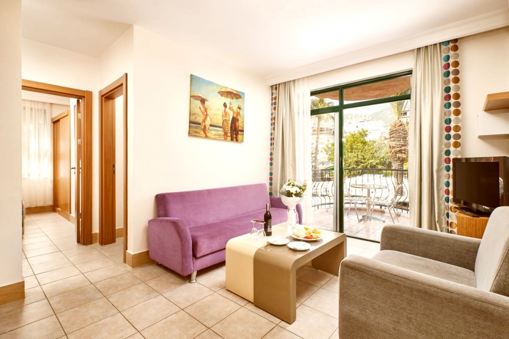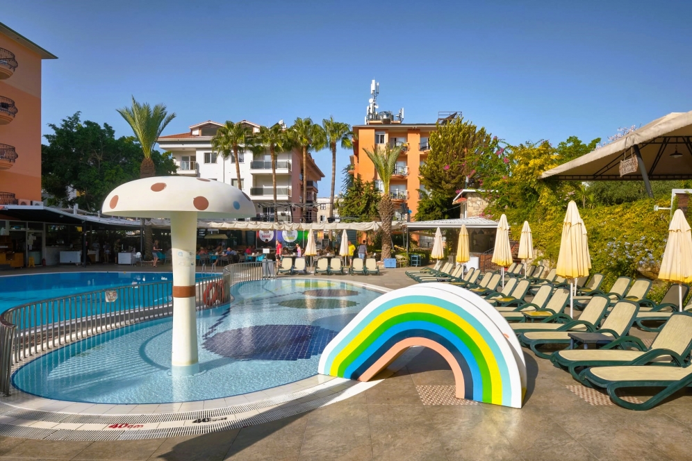 Sunpark Garden Hotel ligger i stadens centrum och bara 900 meter från Kleopatrastranden. Hotellet erbjuder gratis transfer till Kleopatrastranden varje dag under sommarsäsongen. Huvudrestaurangen serverar frukost, lunch och middag i bufféstil. På Sunpark Garden Hotel kan gästerna njuta av rätter från det turkiska, italienska och vegetariska köket både inne och ute vid poolen. Hotellet har 3 rutschbanor för de lite större barnen och 2 rutschbanor för de mindre. Aqua bar med drycker, smoothies, milkshakes och glassar samt snacks och snabbmat finns tillgänglig fram till 18:00. Hotellet håller även speciella arrangemang så som födelsedagsfirande på sin veranda. Det finns även en lekplats och en barnklubb där barnen kan roa sig medan de vuxna tränar i fitnesscentret eller kopplar av i massagerummet. Hotellet erbjuder dart, bordtennis och aerobics. Vattensporter på stranden är tillgängliga mot en avgift. I relaxavdelningen finns ett turkiskt bad och ett ångbad, och massage och spabehandlingar erbjuds mot en avgift.