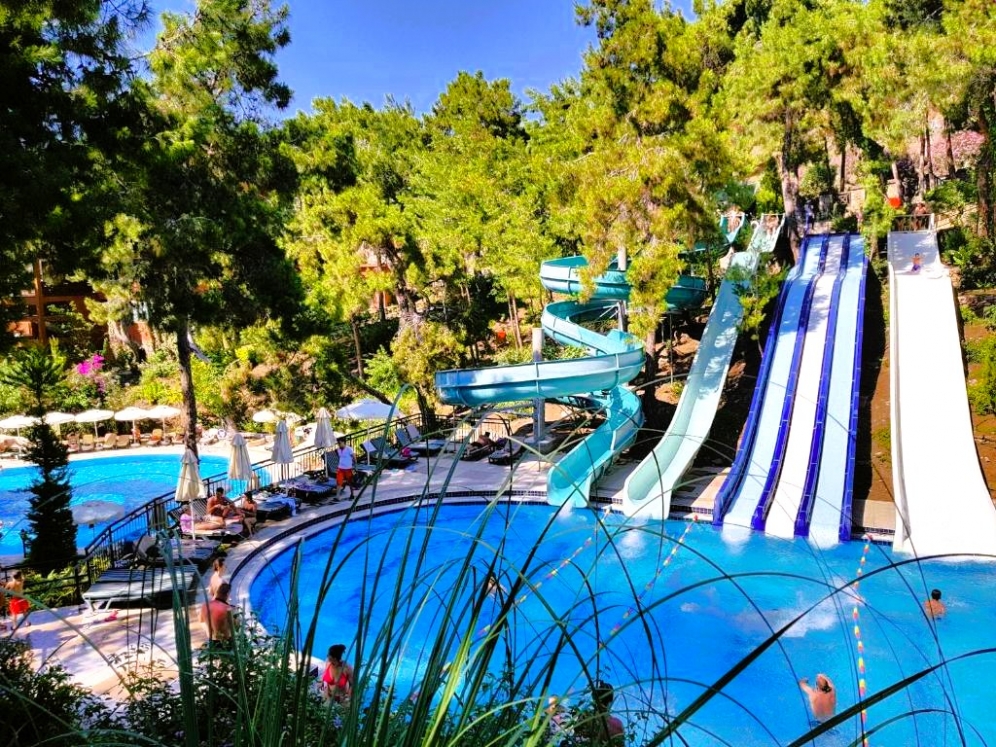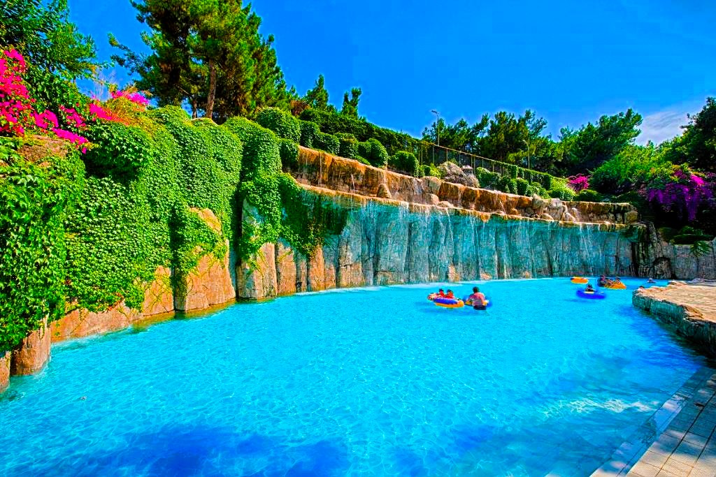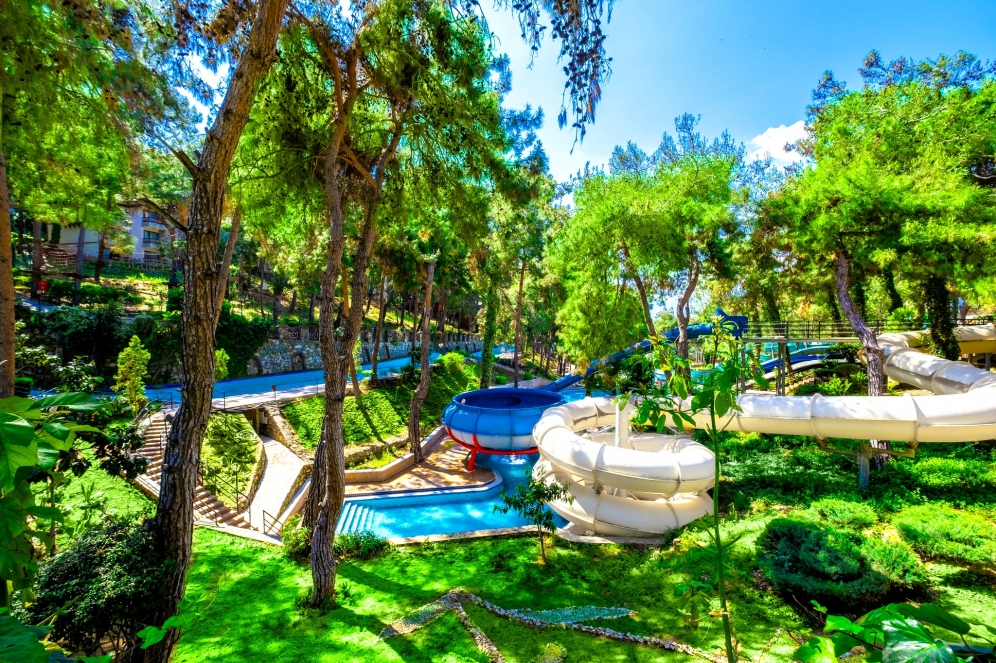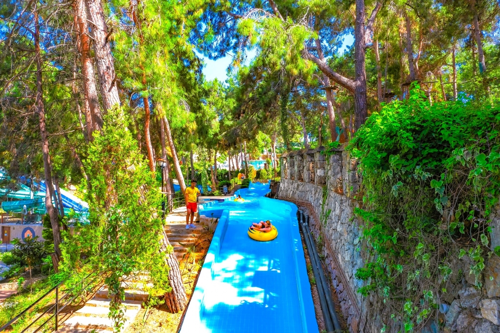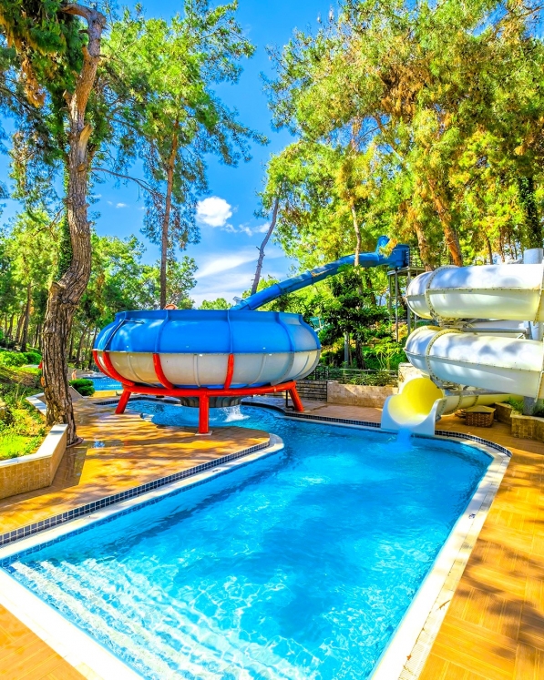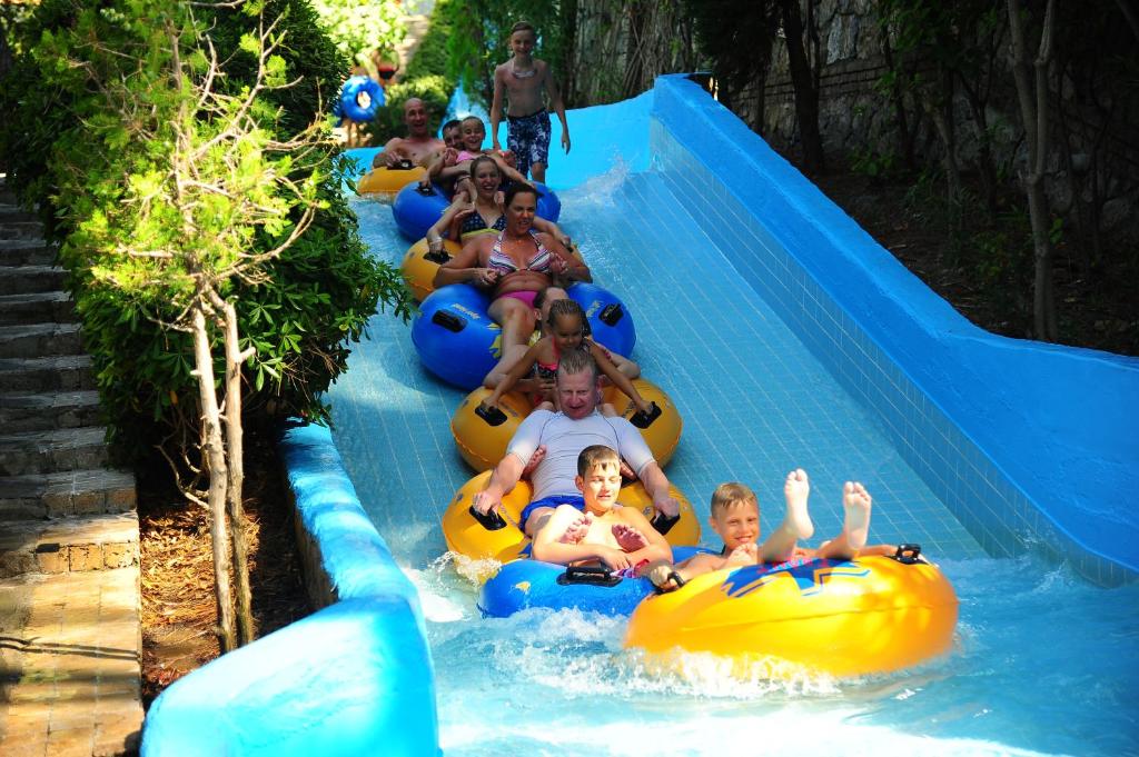 Hotellet har ett eget vattenland med 8 stora vattenrutschkanor och 4 barnrutschkanor, lazy river, vattenfallspool och en separat splashpool för små barn. Här finns även raftingbana med gummibåtar, vilket gör det till ett av de mest kompletta vattenområdena på Antalyakusten. Aktiviteter inkluderar tennis, beachvolley, aerobics, yoga, dart, bågskytte, minigolf, biljard, spelrum, kvällsshower, livemusik och temakvällar. Animationsteamet erbjuder dagliga program för både barn och vuxna.