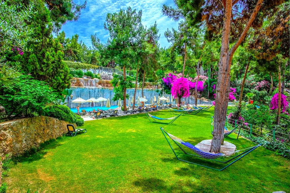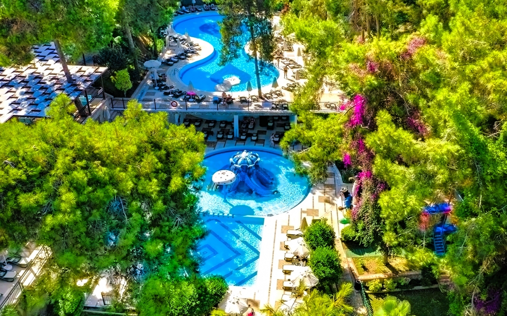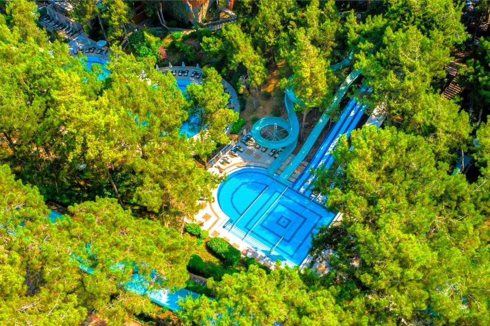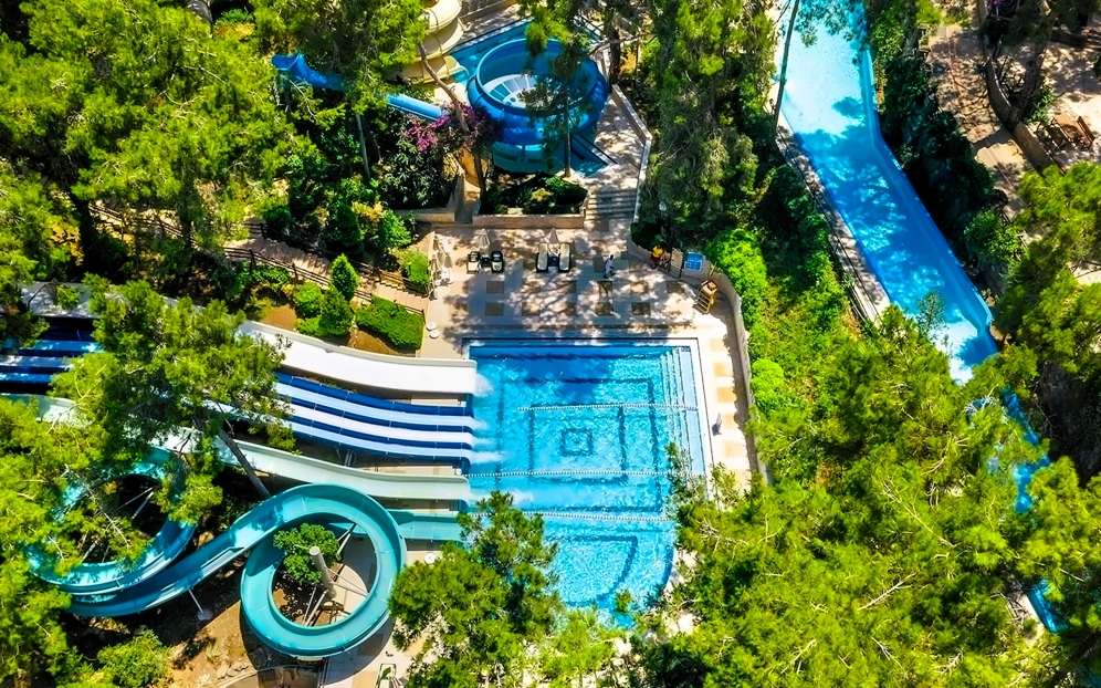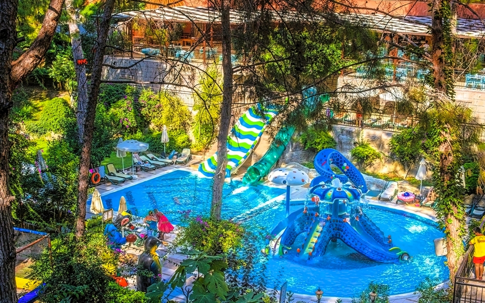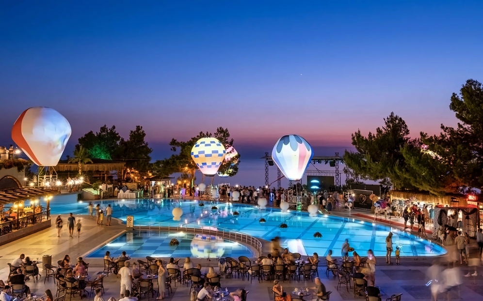Hotellet har ett eget vattenland med 8 stora vattenrutschkanor och 4 barnrutschkanor, lazy river, vattenfallspool och en separat splashpool för små barn. Här finns även raftingbana med gummibåtar, vilket gör det till ett av de mest kompletta vattenområdena på Antalyakusten. Aktiviteter inkluderar tennis, beachvolley, aerobics, yoga, dart, bågskytte, minigolf, biljard, spelrum, kvällsshower, livemusik och temakvällar. Animationsteamet erbjuder dagliga program för både barn och vuxna.