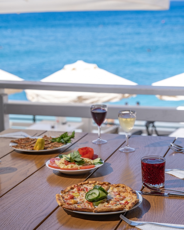 Hotellet erbjuder ett generöst All Inclusive-program med måltider, snacks och dryck dygnet runt. Här finns bufférestaurang med internationella och turkiska rätter, flera à la carte-restauranger (italiensk, fisk, turkisk), samt flera barer – inklusive poolbar, strandbar och lobbybar.